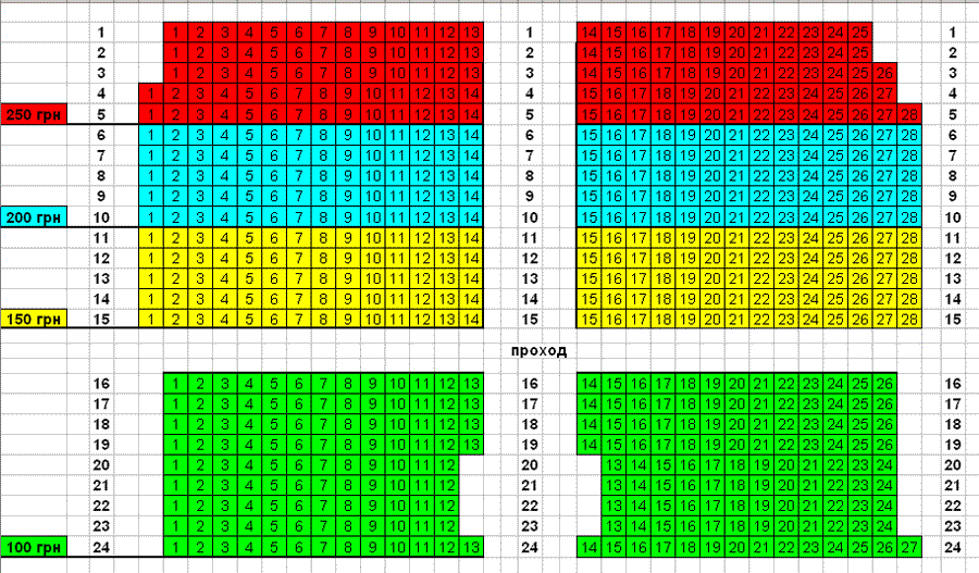 16-24 ряд: 100 грн. (все билеты по 100 грн. уже проданы)